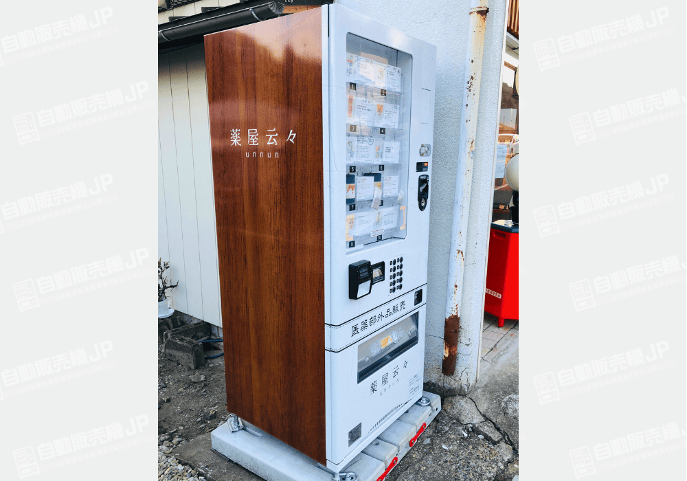 薬屋云々様に健康・セルフケア商品向け自動販売機を設置させていただきました。